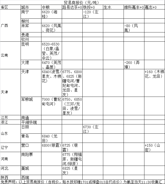 11日各地赤砂糖报价综述